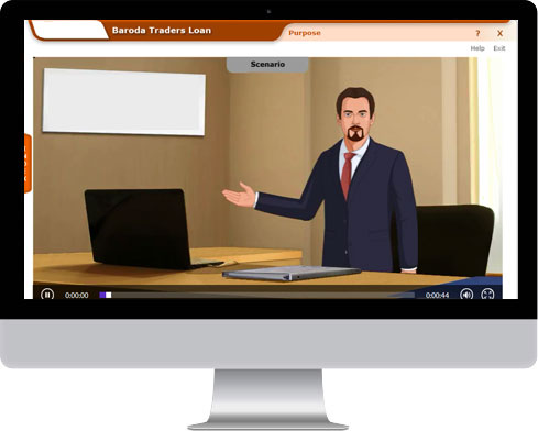 - Scenario-based Learning: The eLearning program was spread across a number of modules. Each module educated learners about a product using scenario-based learning approach. The scenarios involved characters that represented customers, senior bankers and newly joined employees depending on the module’s requirements.