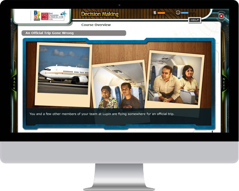 - Innovative Graphics: In line with the client’s requirement to have a lighter course, photographic characters were used in the game. This not only met client’s requirements but also ensured smoother LMS deployment. Use of photographic characters, was also a cost-effective way that provided an enriching learning experience without compromising on the quality. SKILLDOM not only planned the shoot but also provided actors for the shoot.