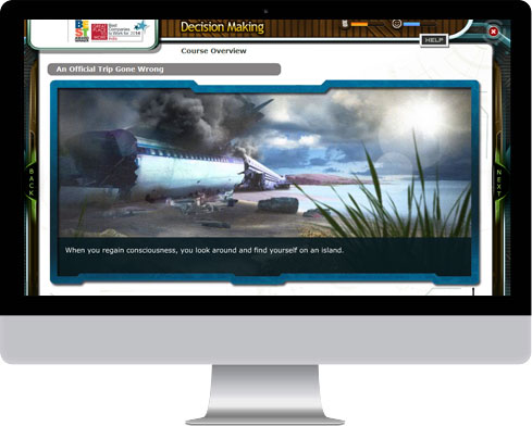 - Gamified Learning: The game-based learning solution required learners to use their decision-making skills. Learners, who were also part of the game, were put in a series of situations along with game characters, requiring them to take decisions on behalf of the characters. Course content, which was the vital part of the solution, was seamlessly embedded in the game.
