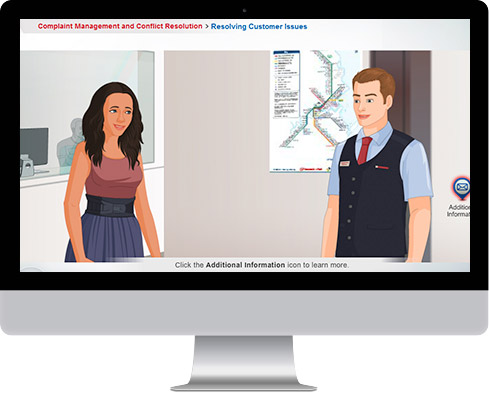 An immersive eLearning solution to help employees of a public transport service provider create positive customer experiences through engaging and interactive scenarios.