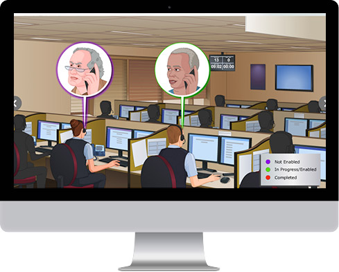 - Scenario-based Approach: The story revolved around various customers that interact with the employees. The conversations happen at places where the staffs usually meet the customers—at ticket window, at rail platform and in the call center. The customer interaction scenarios had rich animation. They were developed after extensive feedback exchange with the client. This was done to make the scenarios more realistic.